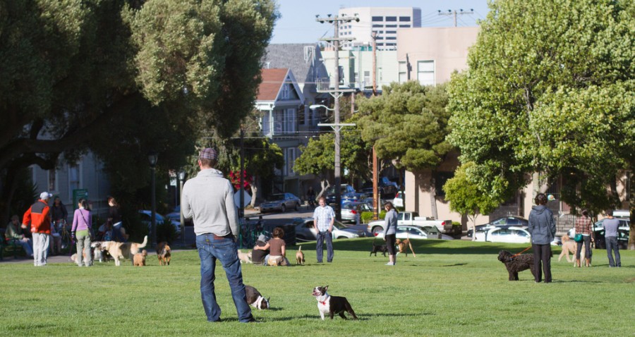 Entonces vio a dos de sus vecinos en el parque con sus respectivos perros. Vaya lata. Se sintió obligado a acercarse un momento.