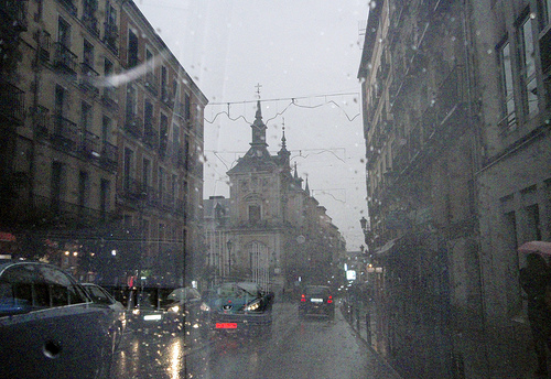 Todo lo que estoy contando ocurría en aquel año que tanto llovió en Madrid. Porque en Madrid hay años de esterilidad y de sequía. Años de vientos que arrancan las ramas y años también de aguaceros tercermundistas. Nunca nada apocalíptico. Pero es una ciudad cuajada por la inconstancia. Pocas nieves atlánticas, por mucho que nos empeñemos: solamente una vez por lustro llegan aires del norte que cubren de blanco asombro las aceras durante pocas horas, pero se diluye y se ensucia en seguida, porque nada salvo lo errático persiste en este suelo.